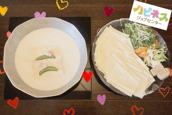 🥣 豆乳ベースのやさしいスープに湯葉